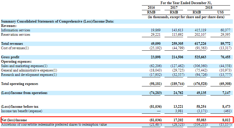 新氧的這一模式取得了不錯成效。招股書顯示,新氧總營收從2016年4900萬元升至2017年的2.59億元,2018年進一步增長至6.17億元。其凈利潤也一路走高,2016年尚虧損8104萬元,到了2018年,凈利潤已達5508萬元,同比2017年的1720萬元增長220%。