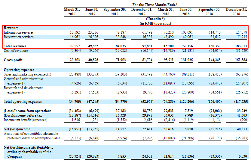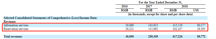 值得注意的是,新氧這幾年的收入結構正從預定服務為主轉為以信息服務為主。根據2018年的最新數據,信息服務的收入為4.15億,占比62.3%,而預定服務的收入為2.02億,占比32.7%。